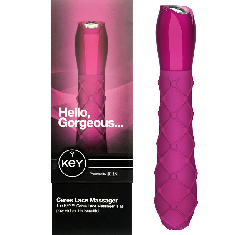 Keyル by Jopenル - Ceres Lace - Pink 5.25" x 1.5" / 13.25cm x 3.75cm 7 intense patterns Soft and luxurious, body safe silicone Sophisticated glass-like effect designer controller Waterproof...