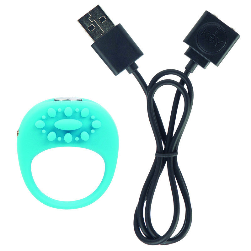 Vibrating silicone ring features 5 patterns and is waterproof. USB rechargeable with magnetic contact. Soft, lint-free pouch included. Ring diameter is 1.25 in.