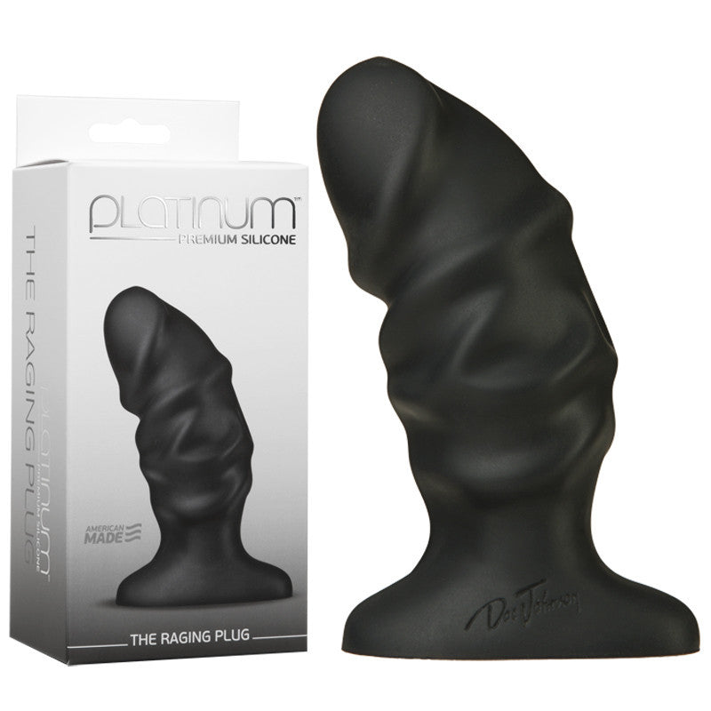 The Raging Plug is sure to bring some serious satisfaction! Perfect for those who crave a heavy-veined texture, this Platinum Premium Silicone anal plug is plush to the touch with a velvety smooth matte finish, all while offering a firm yet flexible feel for ease of use. The Raging Plug features a comfortable base, 2 inch width, and a 4 inch long curved shaft (usable length 3.8 in.). Hypoallergenic and phthalate-free.