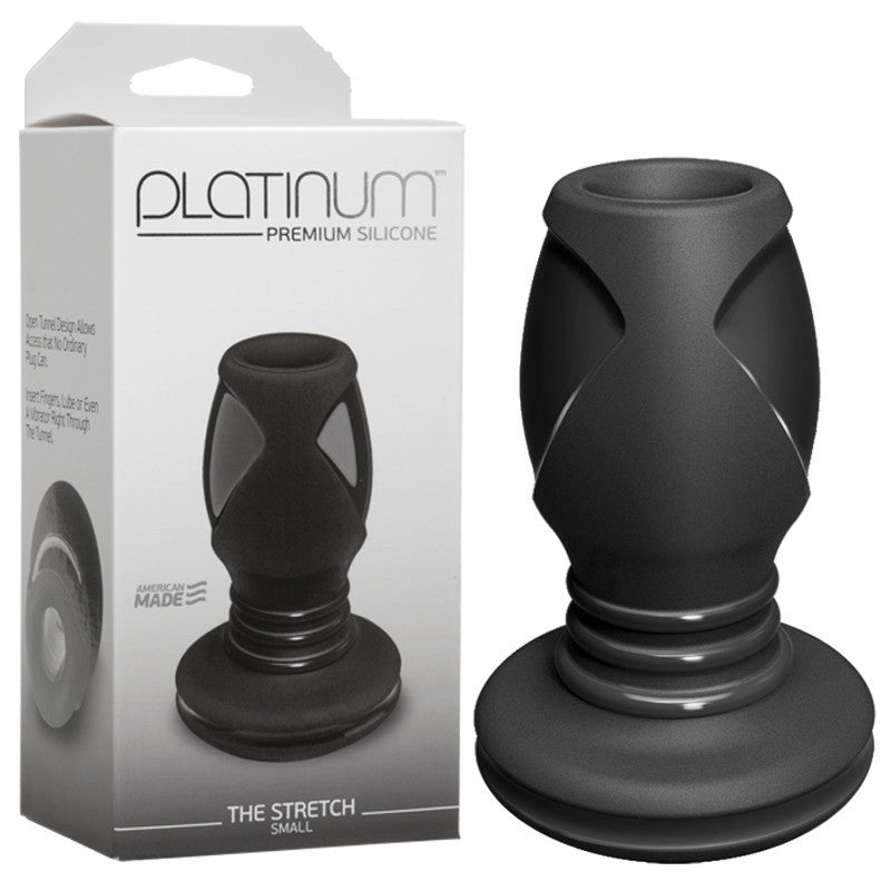 Explore your partner's backdoor with this open-tunnel anal plug. Firm yet flexible, The Stretch Small delivers the satisfying ムfillingメ sensation of a regular plug, but also features a hollow-bodied design allowing access. Insert fingers, lube, or even a vibrator right through the tunnel, for endless possibilities in bedroom play. Made of health grade silicone, this plug reveals a two-tone finish for increased stimulation, a flat base for comfortable wearability, 2.9 in. usable length, and a 1.7 in. width.